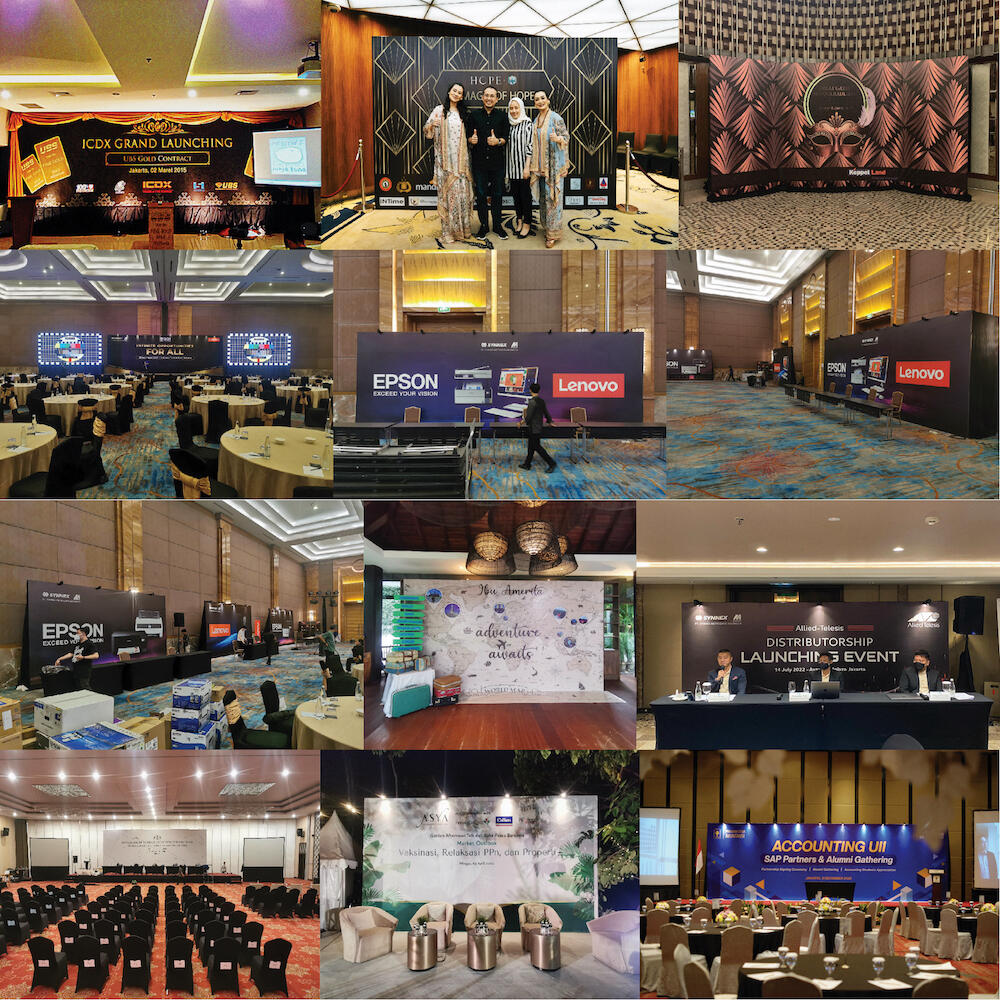 Butuh backdrop untuk seminar, townhall, launching produk, atau event kantor kamu?
